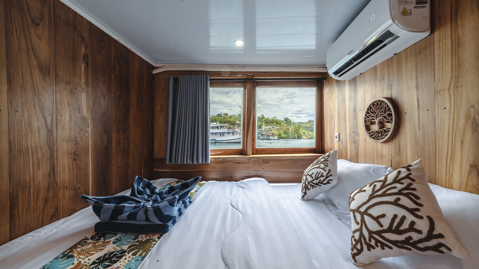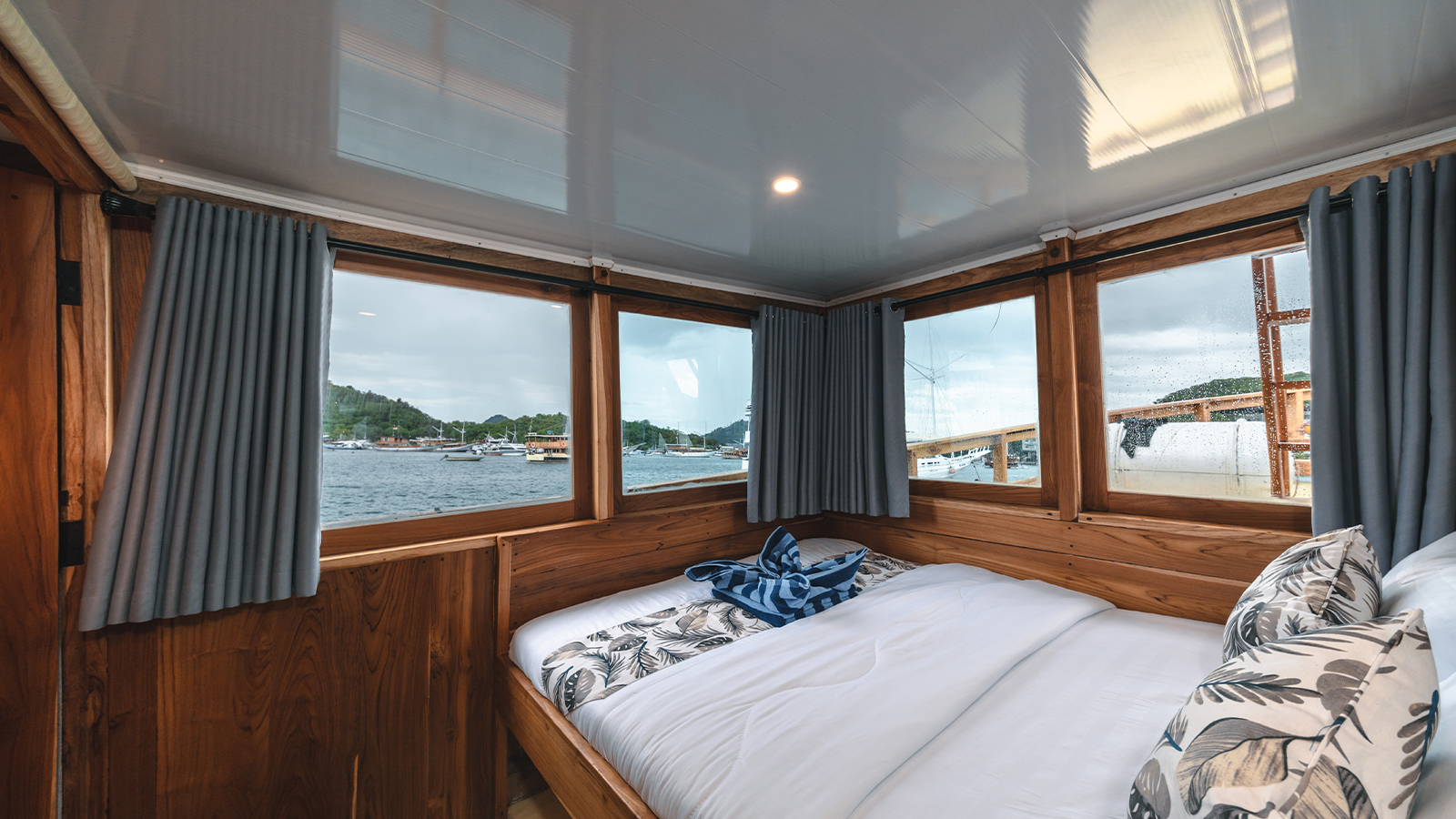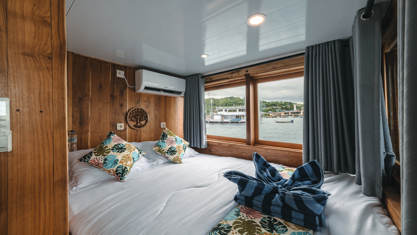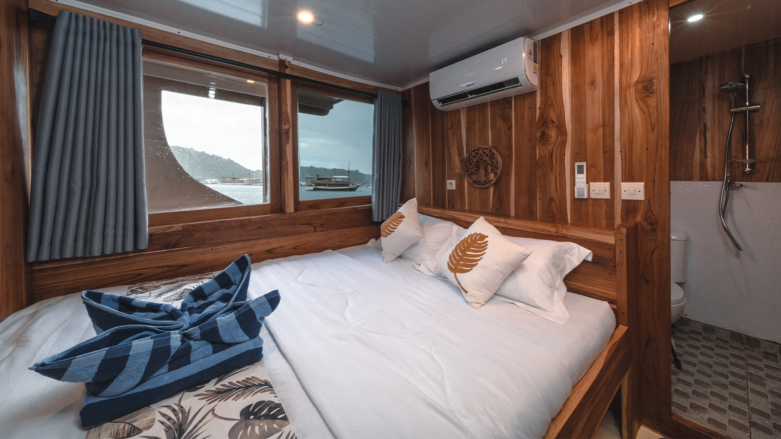 The Gamala Cruises is 8 meters wide and 18 meters long and can accommodate up to 16 guests in eight cabins. Air-conditioned cabins, private bathrooms in each cabin, a private balcony in the main cabin, and ocean views from every cabin will enhance your Komodo Island cruise with Gamala Cruises.